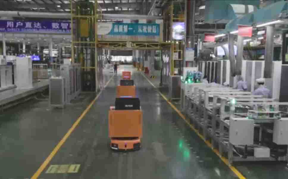 为车载冰箱物流配送打造的智能解决方案,,包含产中物流通过潜伏举升AMR搬运至线边,,,产后成品物流智能仓储,,,流程包含产中物流智能齐套入库,,,线边安灯叫料AMR智能配送至线边,,,成品入库、、、出库,,,,通过无人堆高车机器人,,,,智能仓储管理替代人工作业管理,,实现更高存储、、、更高效率、、、更具柔性化的解决方案。。。